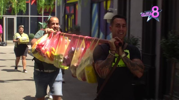 Naime, kako si imali mnogo kesa oni su našli dugačku šipku, pa su kese nanizali na nju, a onda je poneli kao patuljci. Takmičari su bili oduševljeni njihovim izumum jer se ovoga do sad još niko nije setio.