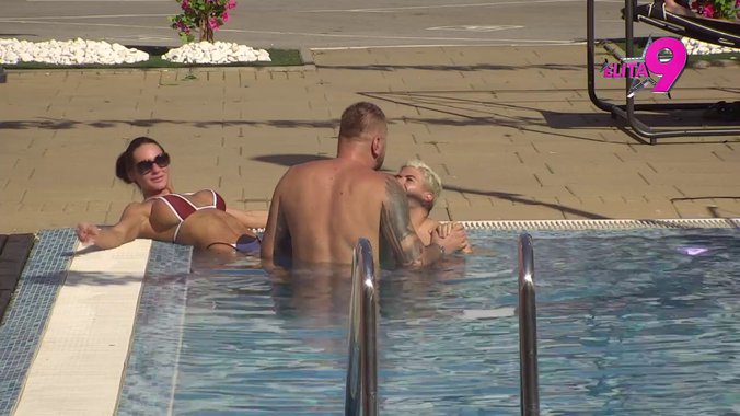 Marko Janjušević Janjuš uživao je sa Dušicom Đokić u bazenu, a njihov idiličan prizor rešio je da pokvari Uroš Stanić, koji mu je prišao s leđa i našalio s njim.
