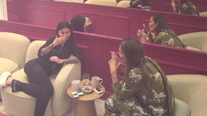 Milena Kačavenda i Vanja Živić osamile su se u pušionici i ponovo pričale u šiframa, a tema razgovora im je ovog putao bio Anđelo Ranković kao i Mina Vrbaški zajedno s Asminom Durdžićem.