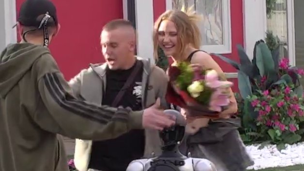 Rada nije mogla da sakrije osmeh sa lica kad je ugledala cveće, te je priznala da je presrećna zbog buketa, nakon čega je poljubila Daču u obraz.